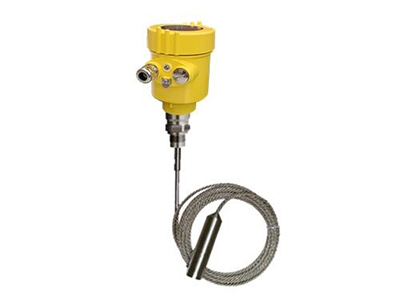 導(dǎo)波雷達(dá)是基于時間行程原理的測量儀表,雷達(dá)波以光速運(yùn)行,運(yùn)行時間可以通過電子部件被轉(zhuǎn)換成物位信號。探頭發(fā)出高頻脈沖并沿纜式或桿式探頭傳導(dǎo),當(dāng)脈沖遇到物料表面時反射回來被儀表內(nèi)的接收器接收并將距離信號轉(zhuǎn)化為物位信號。